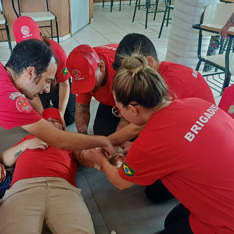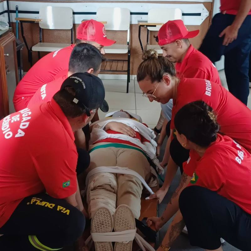 Durante a programação, os brigadistas passaram por exercícios voltados a primeiros socorros e combate a incêndio, com atividades que exigiram atenção, rapidez e domínio dos procedimentos corretos. As instruções abordaram desde o atendimento inicial a vítimas até a utilização segura de equipamentos, permitindo que cada participante compreendesse seu papel em diferentes cenários emergenciais.